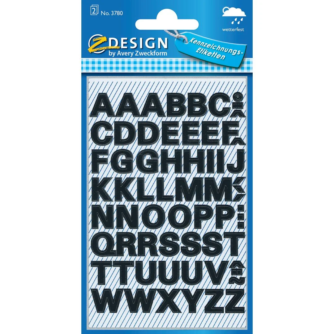 Etikett AVERY bokstav 9,5mm A-Z sort
