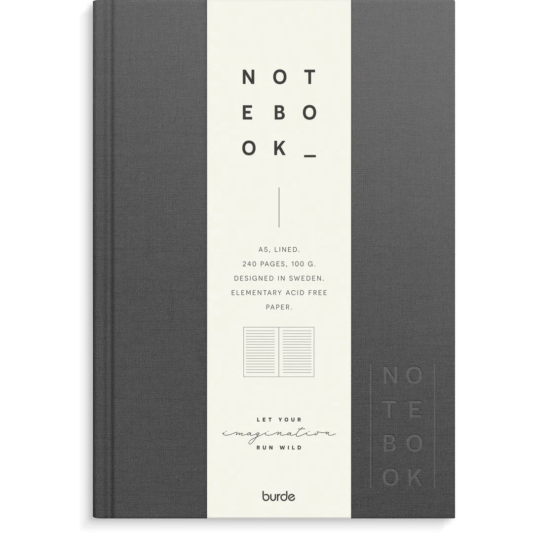 Skrivebok BURDE A5 linjer mørk grå