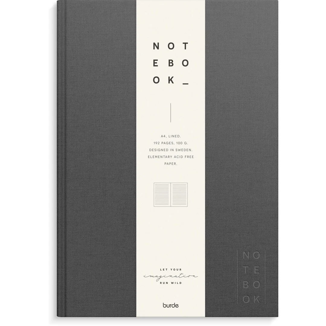 Skrivebok BURDE A4 linjer mørk grå