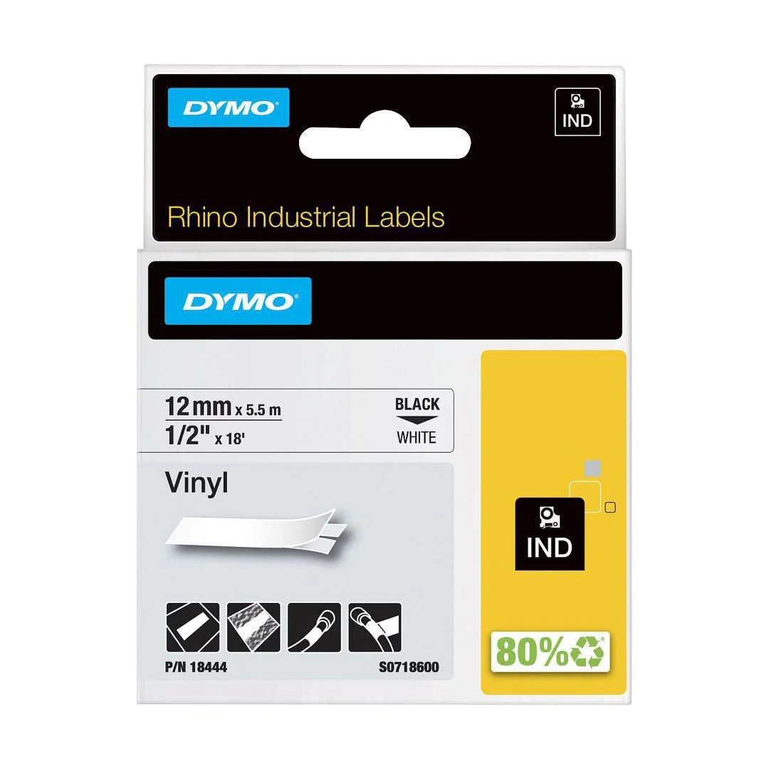 Tape DYMO Rhino vinyl sort/hvit 19mm