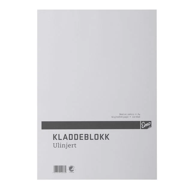 Kladdeblokk EMO A4 60g 100 blad ulinjert