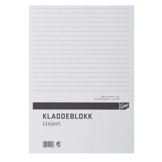 Kladdeblokk EMO A4 60g 100 blad linjer