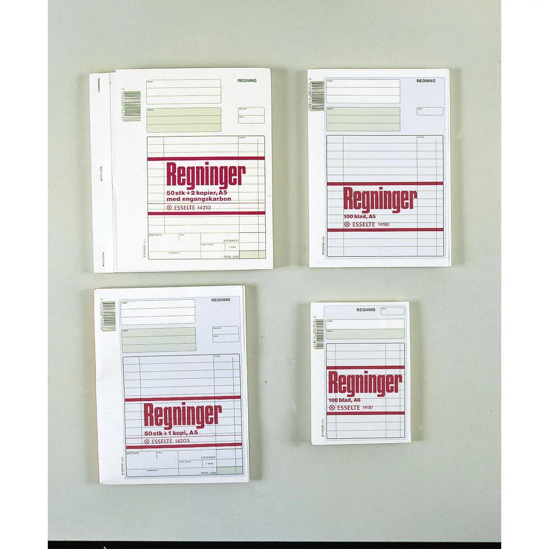 Regningsblokk A5/2 kopier 50×3 blad