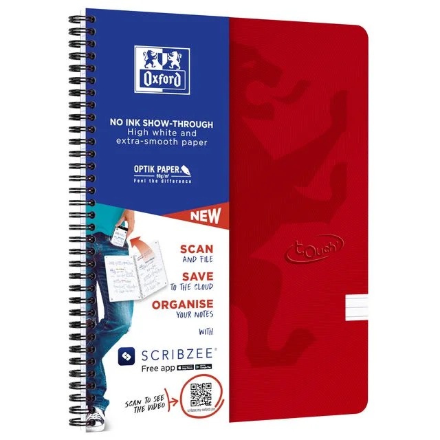 Notatbok OXFORD Touch A4+ 90g linjer rød