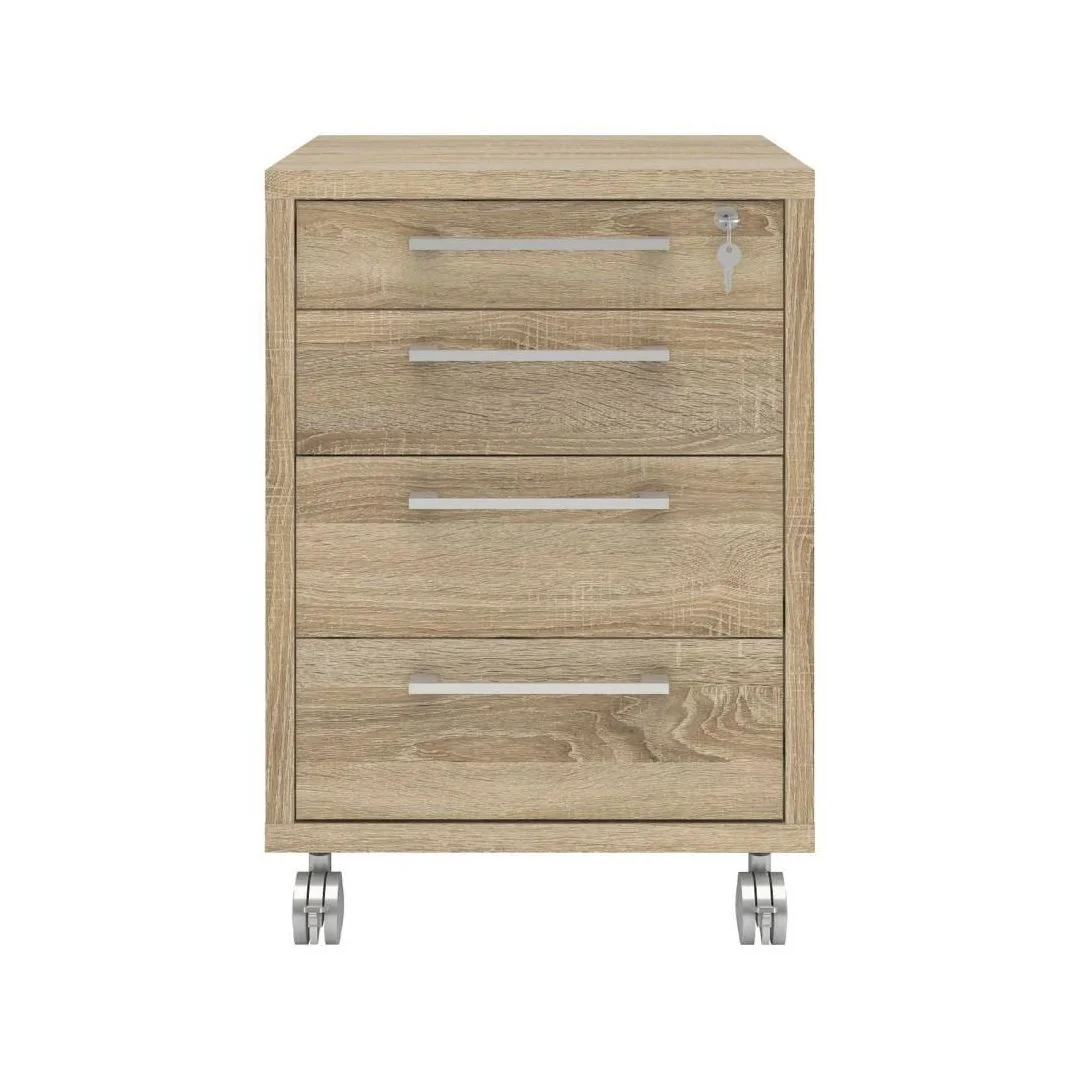 Skuffeseksjon PRIMA m/hjul 4 sk eik