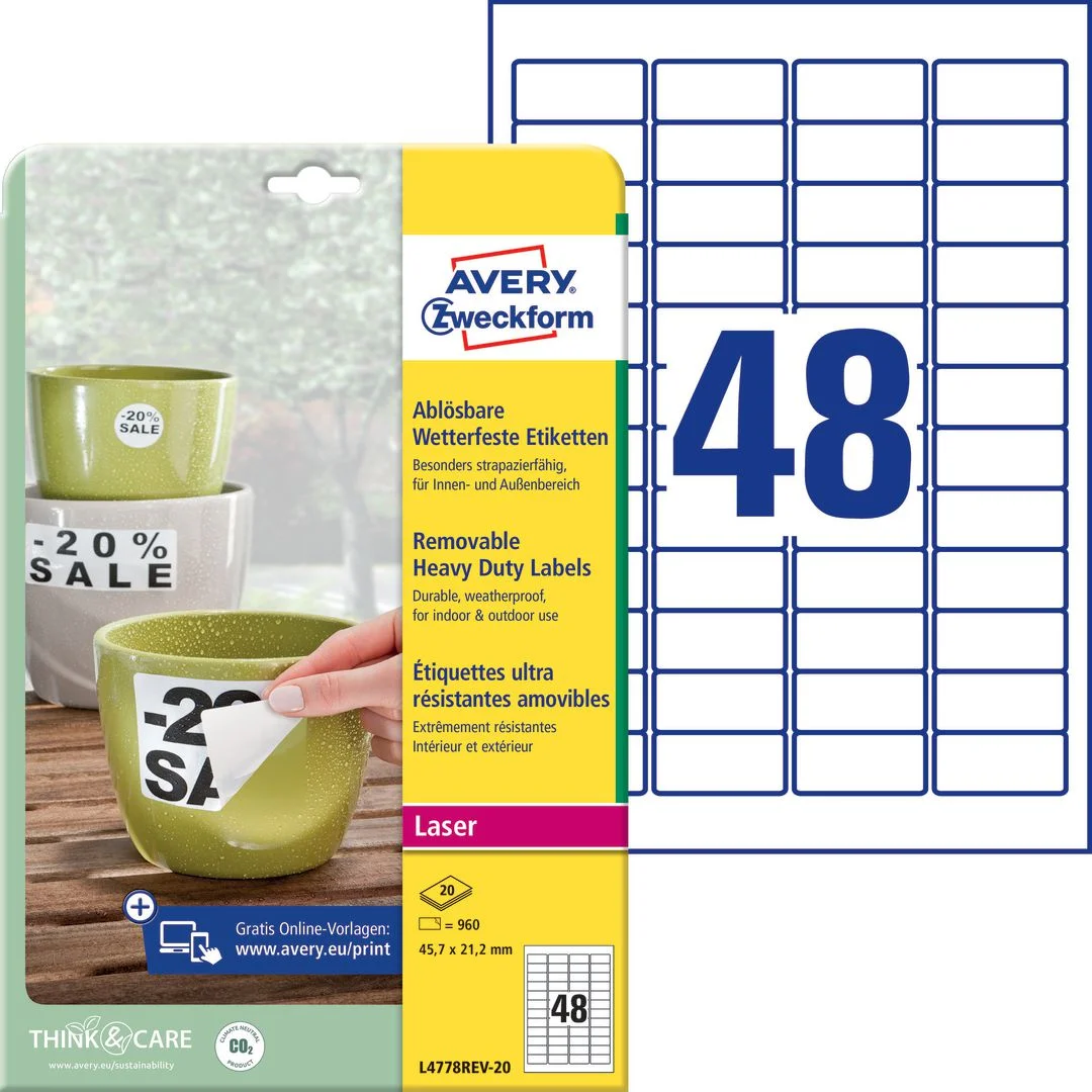 Etikett AVERY sterk avtag 45,7×21,2(960)