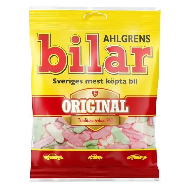 Ahlgrens er Norges mest solgte bil Godteriet er et søtt, seigt og porøst skumprodukt formet som små biler i tre ulike farger (hvit, grønn og rosa).