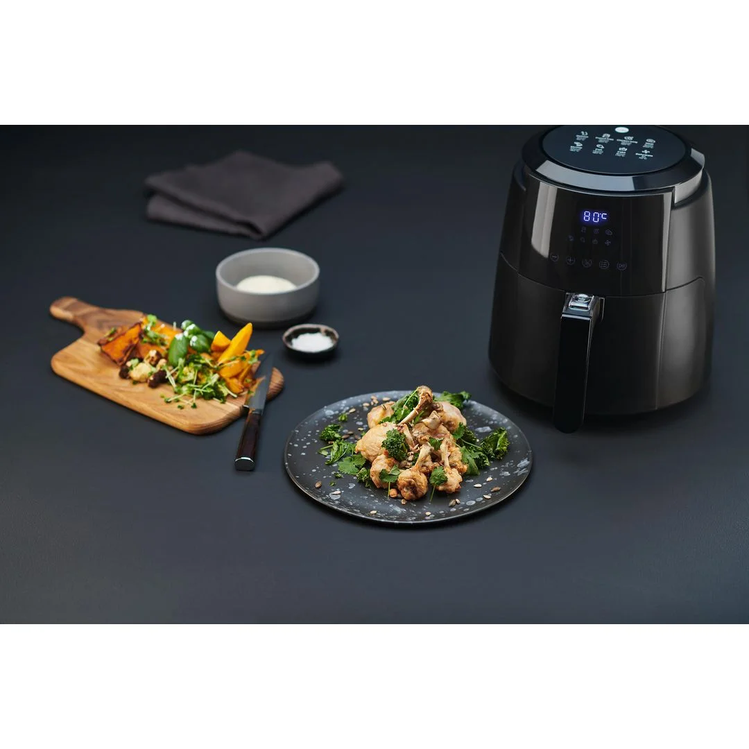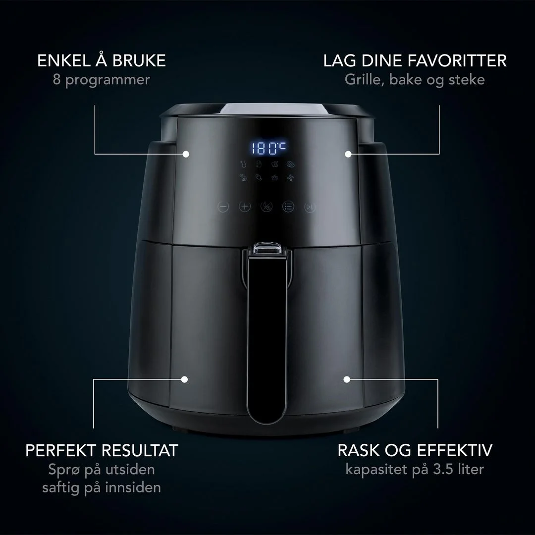 Air Fryer med Airfryeren Crispier lager du gode retter med crispy og sunt stekeresultat. Lag rettene du elsker, som kyllingklubber, fisk, pommes frites, potetgull og muffins i denne maskinen. Air Fryeren er også perfekt til varme opp rester for et sprøtt resultat. Airfryer bruker luft for å få det samme sprø resultatet som fritering i olje.