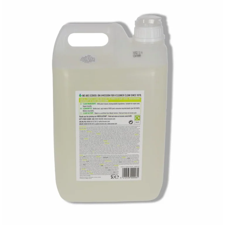 Den allsidige formelen kan fortynnes og tilpasses for å dekke behovene ved alle nivåer av smuss. Vaskemiddelet etterlater overflater og rom helt rene, med en frisk, vedvarende duft av sitrus. Som en del av Ecover-serien av miljømessige bærekraftige produkter er dette vegetabilsk baserte vaskemiddelet fritt for klor, halogen og petroleumsbaserte forbindelser. Alle de ikke-mineralske bestanddelene er fullstendig biologisk nedbrytbare. Universalløsning som holder interiøret friskt og rent Hurtigtørkende formel som ikke etterlater seg striper eller flekker Behagelig, vedvarende duft som frisker opp rommene Klorfritt Biologisk nedbrytbar.