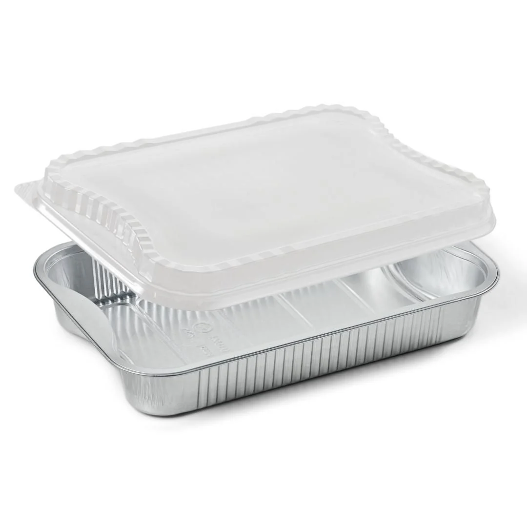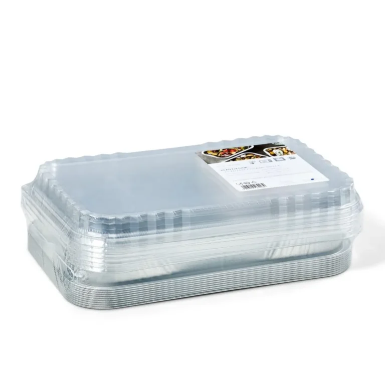 Aluminiumsformer med lokk, for oppbevaring og tilberedning av kjøtt, fisk og grønnsaker. Formen kan gå direkte fra fryst tilstand til ovn.