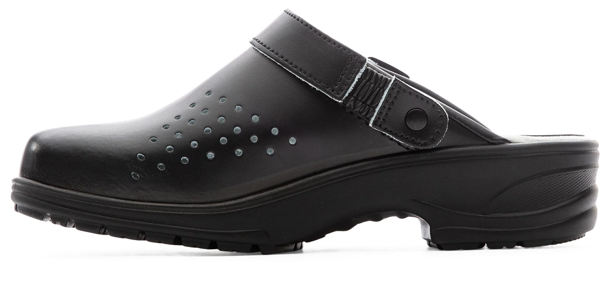 Monitor Birka Backstrap er en klassisk arbeidstøffel som kombinerer komfort og funksjonalitet. Den ergonomiske Texon-innersålen med pute gir ekstra støtte, mens den myke lateksdynen med fuktabsorberende skinn holder føttene tørre og komfortable. Den sklisikre PU-yttersålen er både støtdempende og sertifisert i henhold til SRC, noe som gir pålitelig stabilitet på krevende underlag. Med praktisk slip-in-design og bred passform er dette et ideelt valg for deg som trenger en komfortabel og sikker sko i hverdagen.
