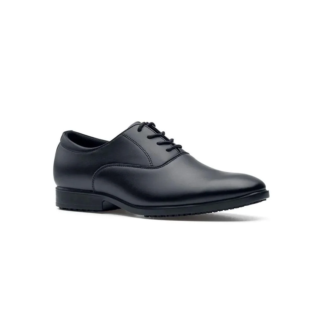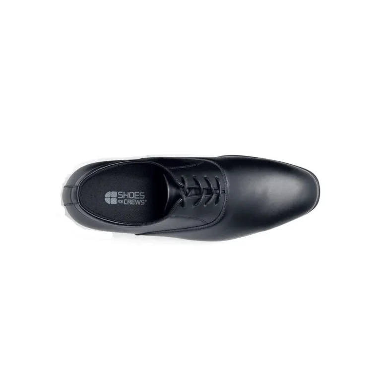 Klassisk dress-sko til herre i vannavvisende skinn. Støtdempet innersåle og sklisikker yttersåle. Innersålen kan tas ut og luftes. Dette anbefales etter endt skift. Passer til resepsjon, servitør og administrative stillinger med formelt antrekk. – Skreddersydd passform – Sertifisert i henhold til EN ISO 20347:2012 OB SRC, Basiskrav yrkessko (ingen tåhette), E – Energiabsorberende hæl).