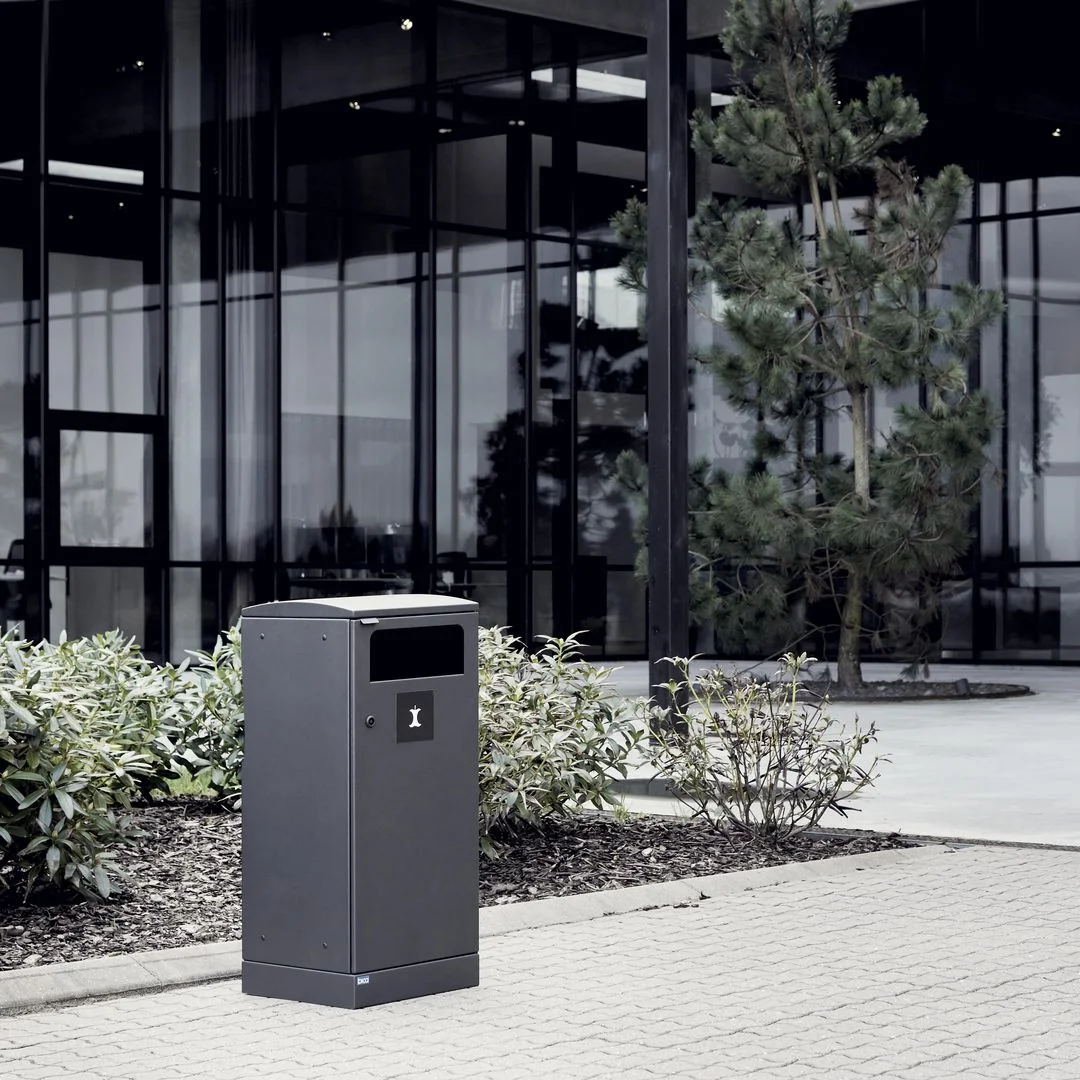 Elegant avfallsbeholder i stilig og praktisk design. Dette er en fleksibel avfallsbeholder fra Bica som sørger for enkel og brukervennlig avfallssortering utendørs. Avfallsbeholderen er utformet med en enkelt innsats, hvor det kan monteres en metallklaff slik at fugler ikke kommer inn i avfallet. Den kommer med integrert poseholder, som kan trekkes ut når posen skal skiftes. Avfallsbeholderen har også en inngangsdør for enkel tømming, som kan åpnes med nøkkel. Denne Bica-modellen kan kombineres med andre Bica-modeller i samme dybde.