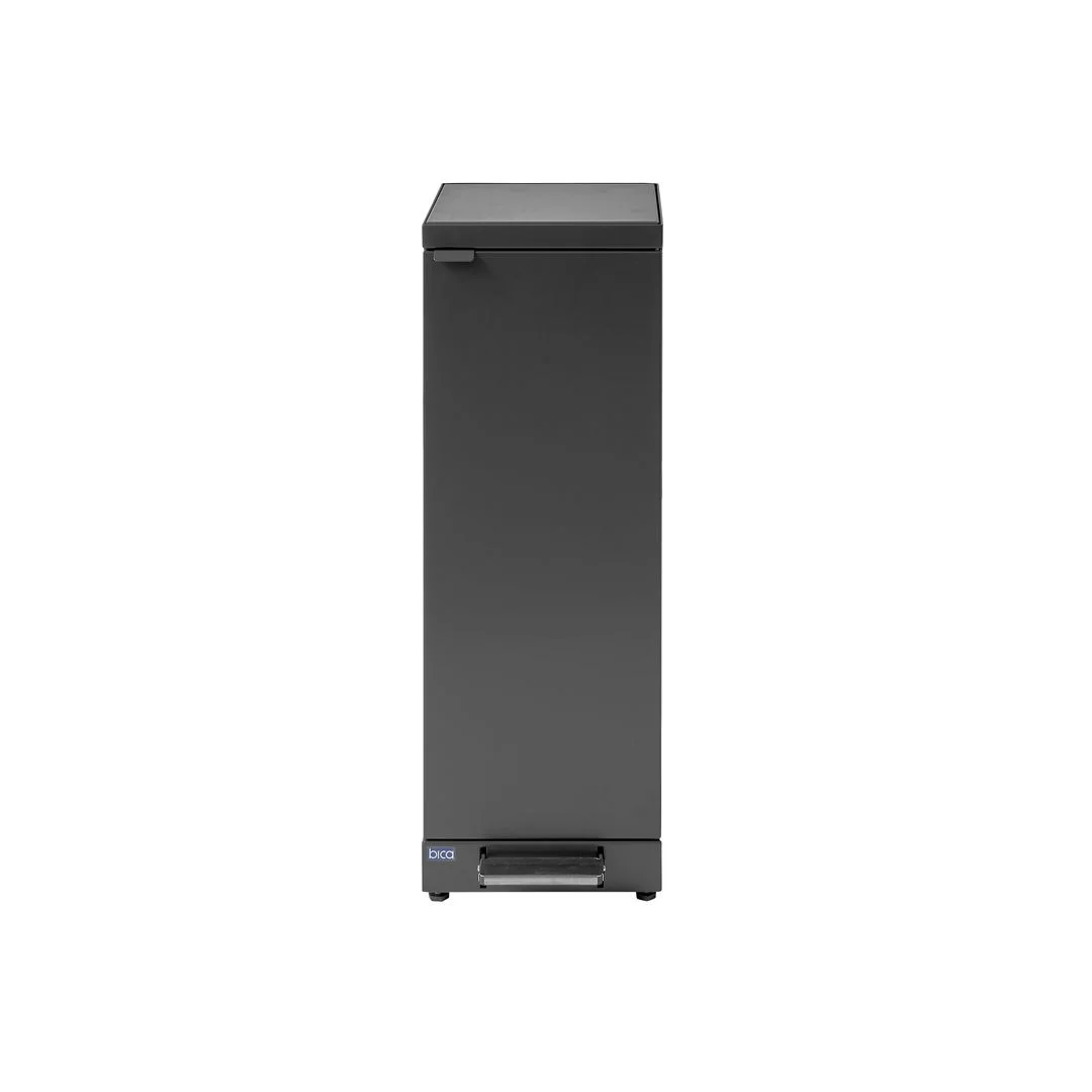 Avfallsbeholderen er utformet med et praktisk lokk, som åpnes ved hjelp av den praktiske fotpedalen slik at håndfri betjening er sikret. Hensikten med lokket er å minimere luktplager og hindre bananfluer ved sortering av matavfall. En virkelig smart løsning hvis posen ikke tømmes veldig ofte. nnAvfallsbeholderen er utstyrt med frontdører med soft close for ergonomisk korrekt tømming uten tunge løft. Avfallsbeholderen er utstyrt med en integrert og sterk poseholder slik at posen holder seg på plass. Det er montert et gasspjeld i lokket for lydløs og stille lukking, og lokket skjuler også posene, slik at avfallssystemet holder et stilig design. Avfallsbeholderen er utstyrt med justerbare føtter, som er skjult bak sokkelen. nnAlle modellene i Bica Series S30 kan tilpasses og kombineres etter behov ved hjelp av kraftige magneter. For å oppnå høy hygiene og minimalt vedlikehold er avfallsbeholderen laget av pulverlakkert stål. Det stilige designet og de rene linjene gjør det til en avfallsbeholder som naturlig kan integreres i interiøret.