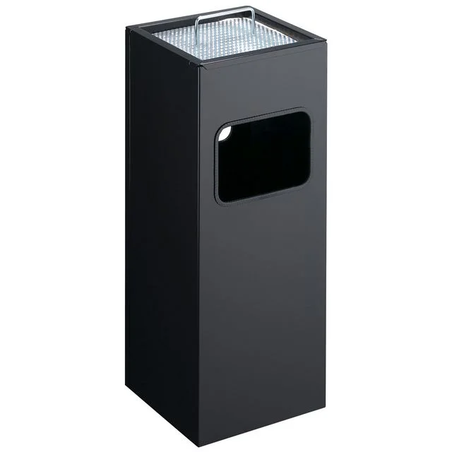Sort stilren og funksjonell avfallsbeholder av metall med askebeger.