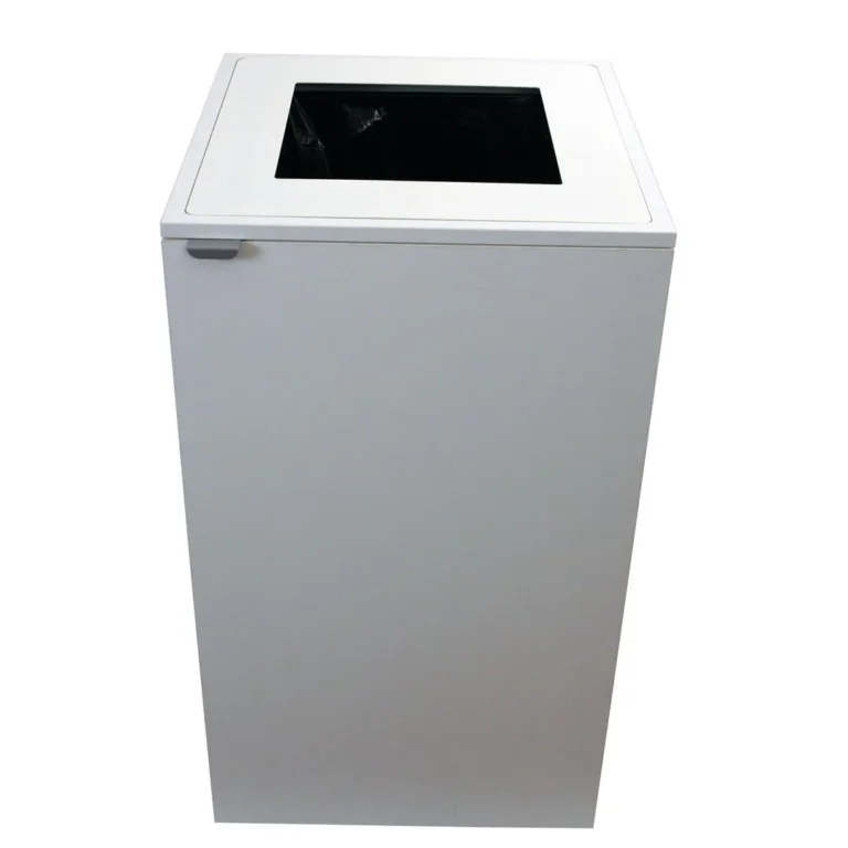 Metalltoppen kan tas av for enklere rengjøring. Passer for 125L pose. Åpningen er: 250 mm.