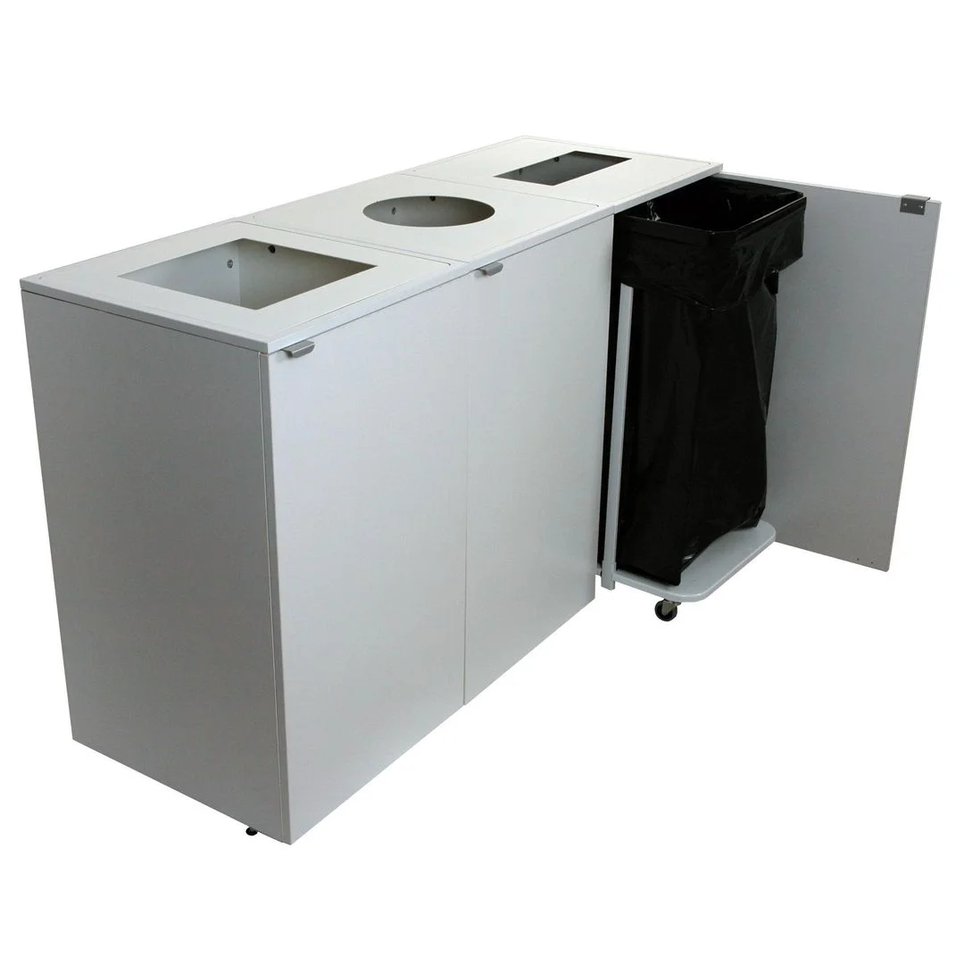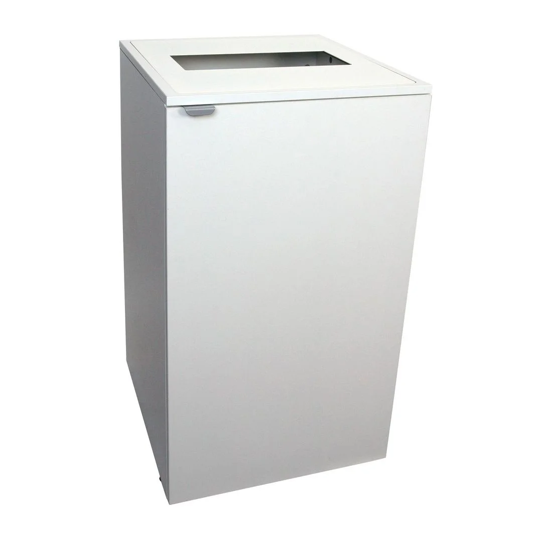 Metalltoppen kan tas av for enklere rengjøring. Passer for 125L pose. Åpningen er: 250 mm.