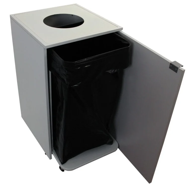 Metalltoppen kan tas av for enklere rengjøring. Passer for 125L pose. Åpningen er: 250 mm.