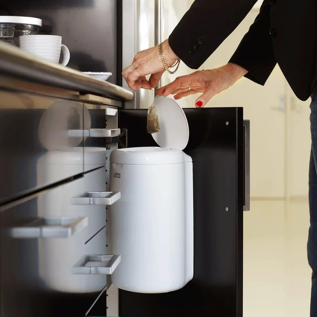 Fungerer utmerket til hygienisk avfallshåndtering av bind og tamponger Toveis lokk gjør avfallshåndteringen diskret Fjern toveis lokket og du har en hendig mini avfallsbeholder Perfekt for steder med liten plass Avfallssystem B3.