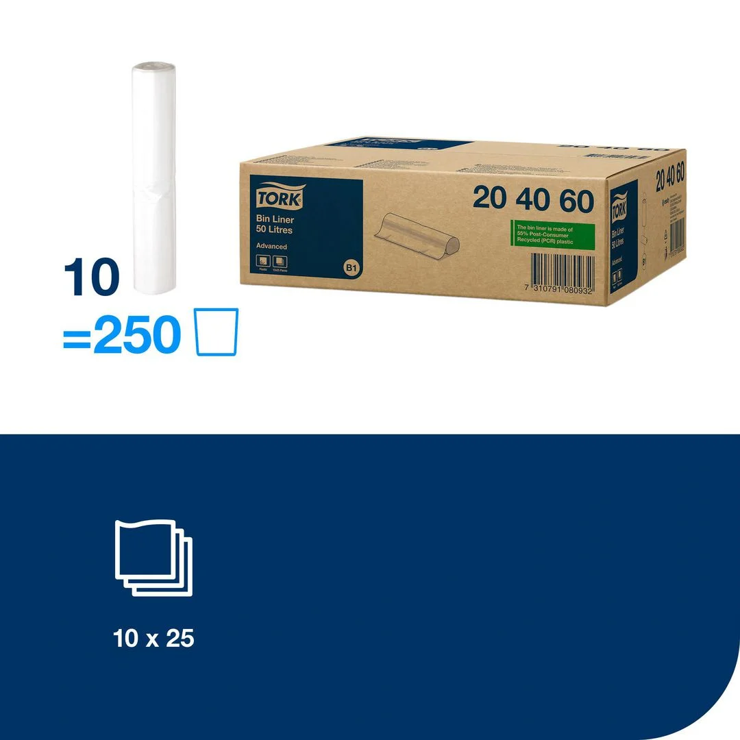 Håndter daglig søppeltømming med dette Tork-søppelbøtteinnlegget som er kompatibelt med 50-liters avfallsbøtter for en perfekt passform.