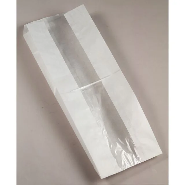 Baguettepose med vindu og sidefalset Fettresistent papir.