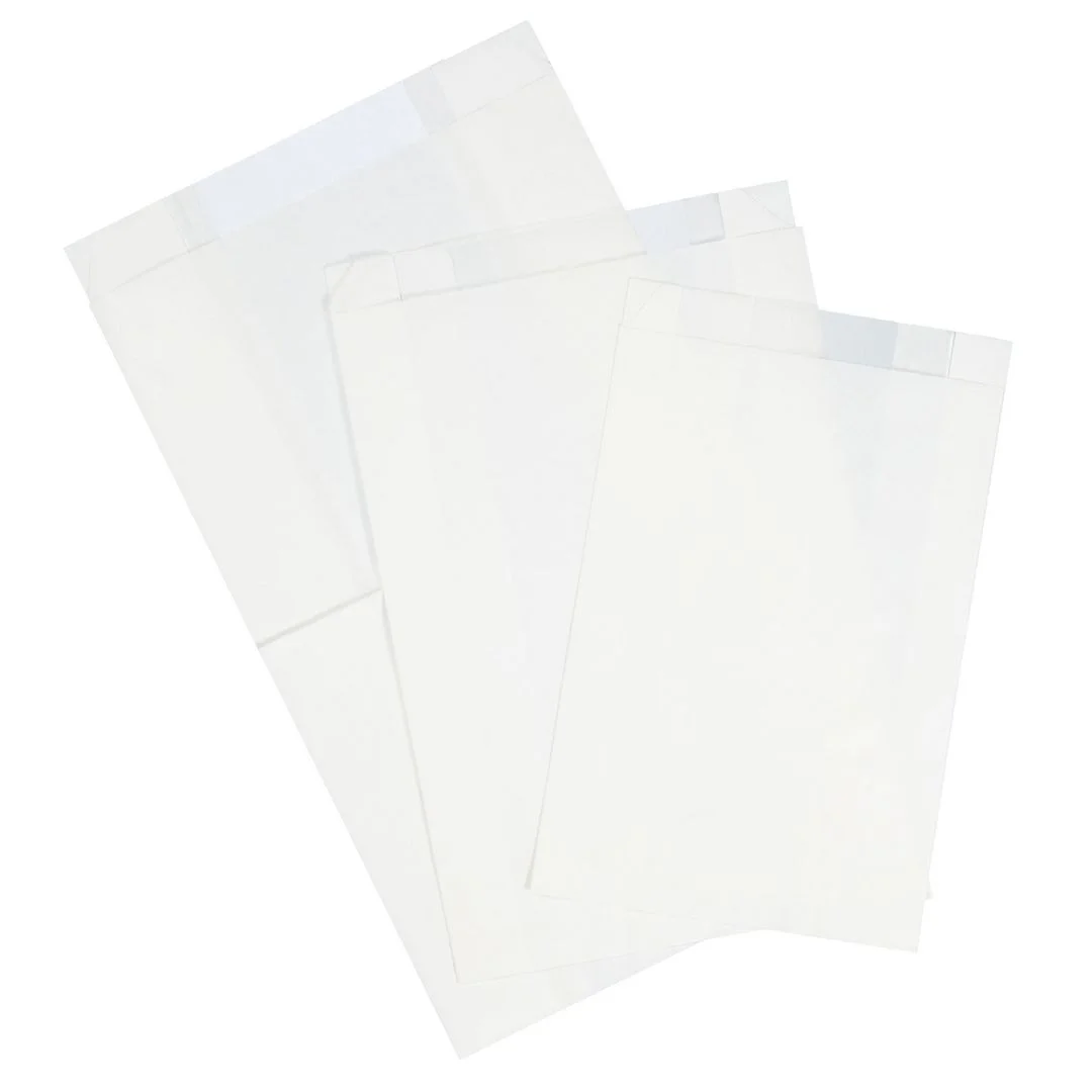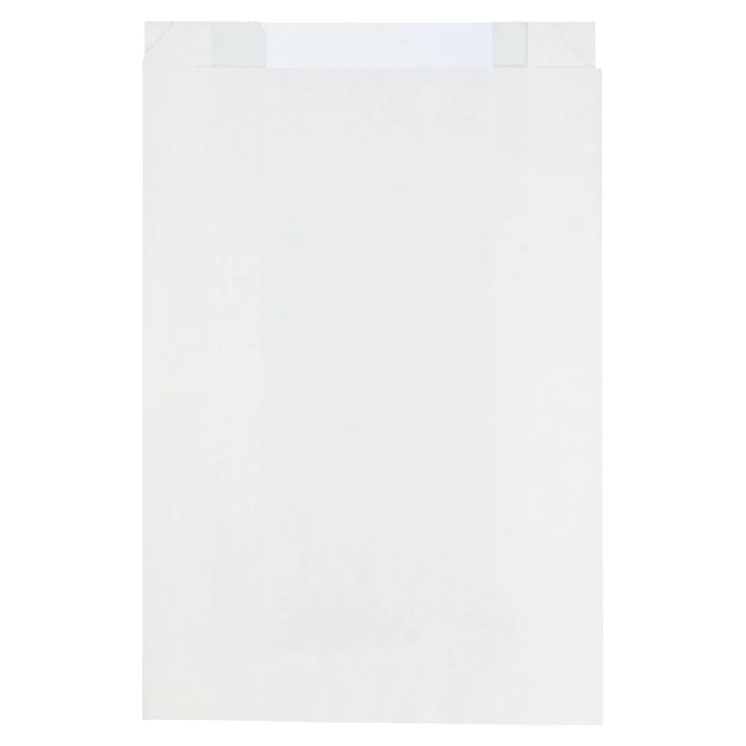 Hvit papirpose med vindu, til bakervarer og lignende. Posen, inkludert vinduet, er laget av 100% papir og gjenvinnes som papiravfall.