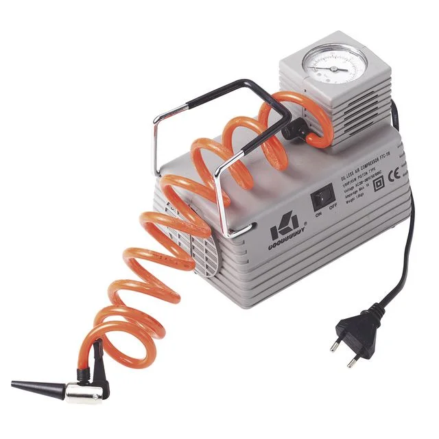 Elektrisk kompressorpumpe med trykkluftmåler.