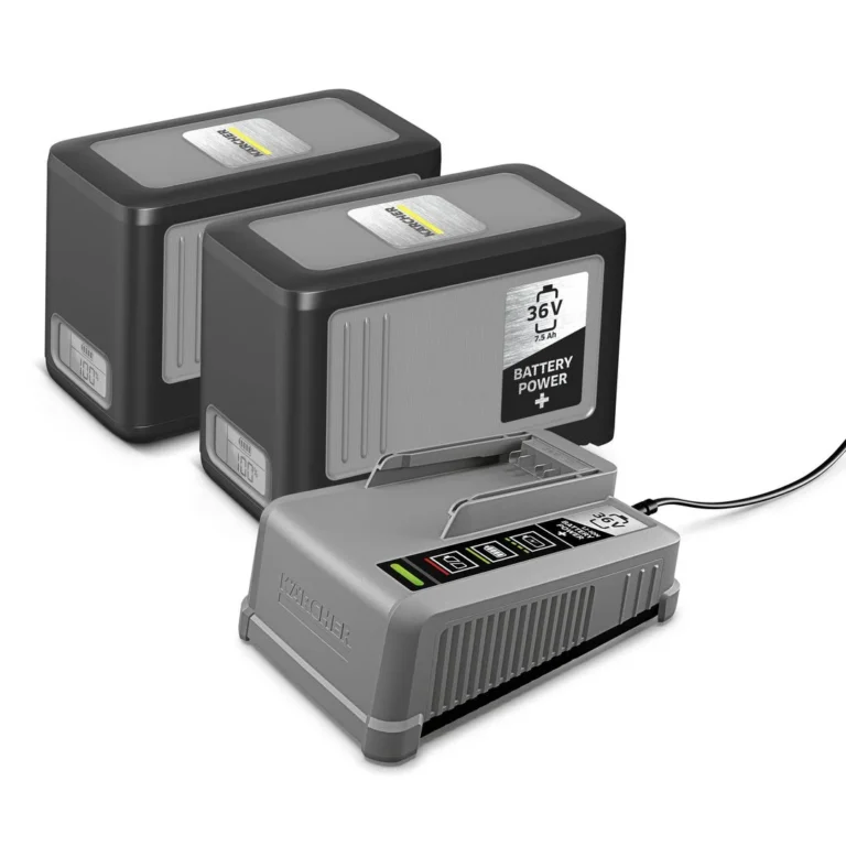 Startpakke Battery Power+ 36/75 inkluderer to 36 V/7,5 Ah-batterier med innovativ sanntidsteknologi, som tillater uavbrutt arbeid med alle Kärcher 36 V Battery Power og Battery Power+ batteriplattformer. Settet kommer med en kraftig hurtiglader med lang levetid, som sørger for dette.