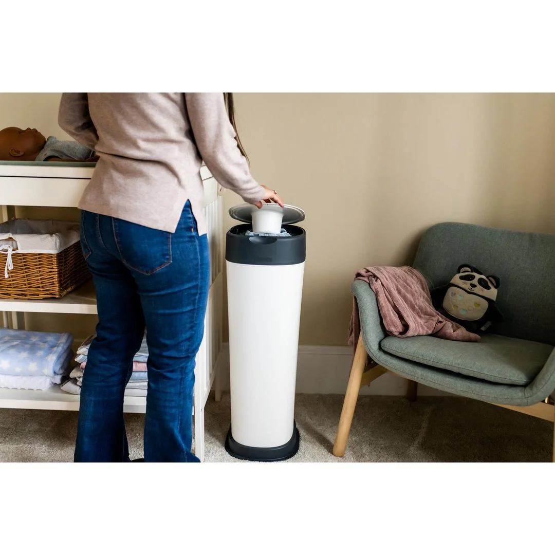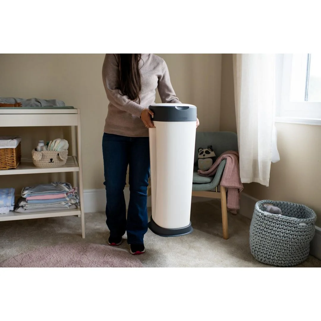 Sangenic XL er en større bleiebøtte som rommer inntil 60 bleier. Hver bleie pakker inn og forsegler hver enkelt bleie. Sangenic XL – en mer behagelig og økonomisk måte å bli kvitt bleier og annet avfall.
