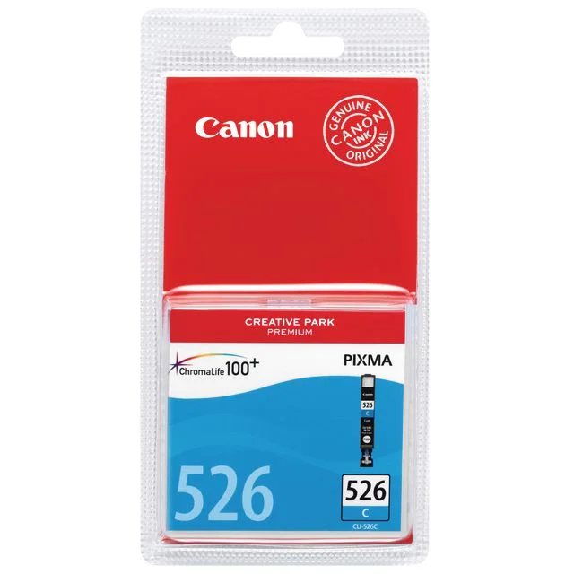Denne cyan Canon CLI-526C-blekkpatronen bruker kvalitetsblekk med en spesiell formel og gir pålitelige og fremragende utskriftsresultater.