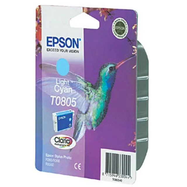 Denne lyse cyan tonerkassetten med Claria Photographic Ink T0805 gir bilder i høy kvalitet med intense farger og dype sortfarger Epson Hummingbird-serien er spesielt utviklet for å brukes med fotoskrivere Utskrifter vil vare opptil 200 år i et fotoalbum på grunn av det fargeekte, slitesterke blekket.