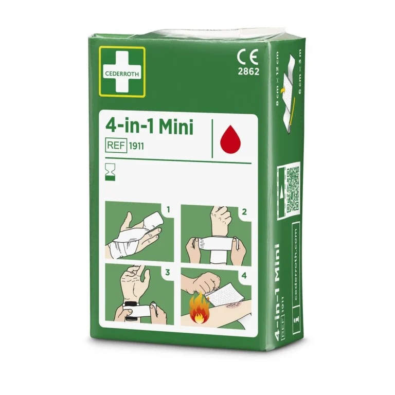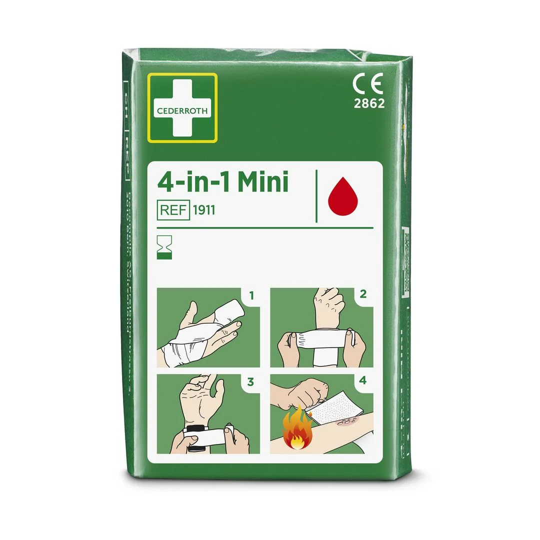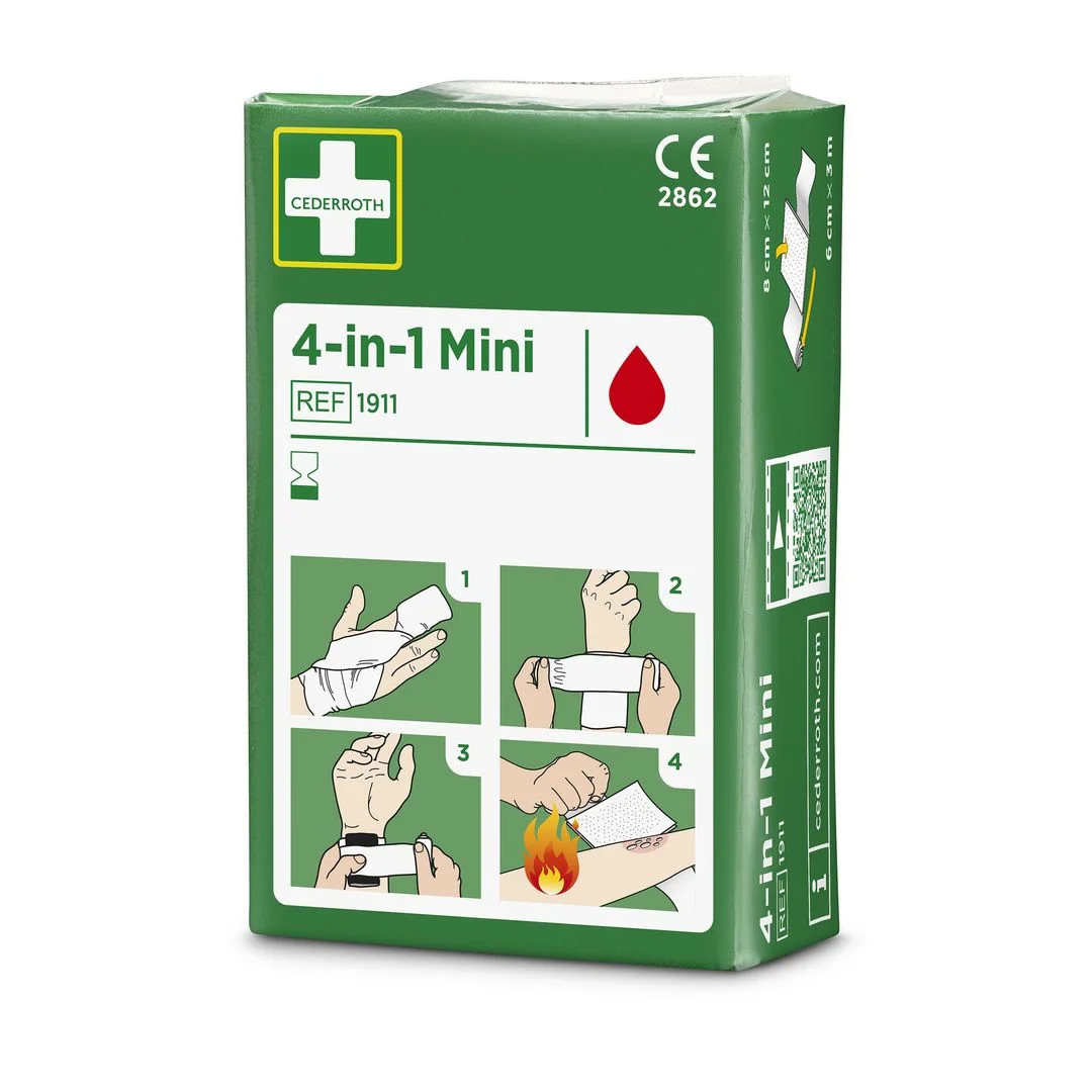 - Inneholder 1 stk spesialkompress 8 x 12 cm og 1 stk elastisk bind 6 cm x 3 m