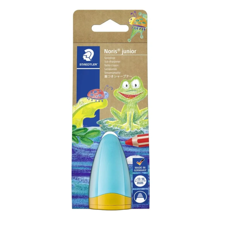 Spesiell form som gjør den behagelig å bruke for alle størrelser av hender. Kan brukes til Noris junior og til kompatible fargeblyanter med en diameter på �� 13-16 mm. Kan også brukes til Noris juniorblyanter og voksstifter. Blisterkort i 100 % resirkulerbar papp.
