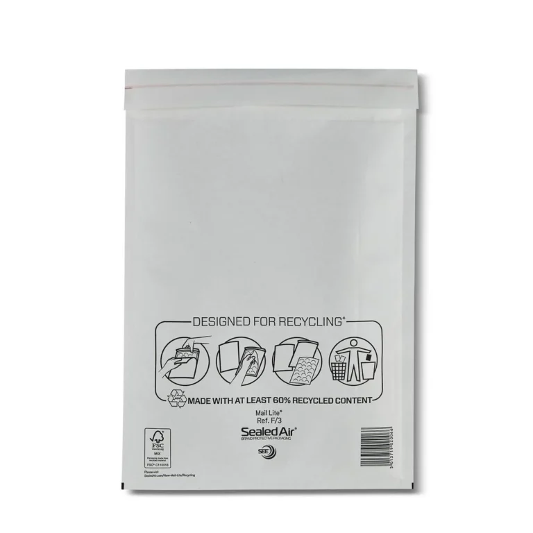 Denne hvite F/3 luftputekonvolutten fra Mail Lite® med patentert AirCap®-bobleplast innvendig er den pålitelige løsningen når du trenger å beskytte noe som skal sendes i posten. Denne lette konvolutten har et kraftig utformet ytre og en praktisk rivestripe som gjør den enkel å åpne, og er dermed ideell for sending av skrivebordskalendere, programvare og andre mellomstore gjenstander.