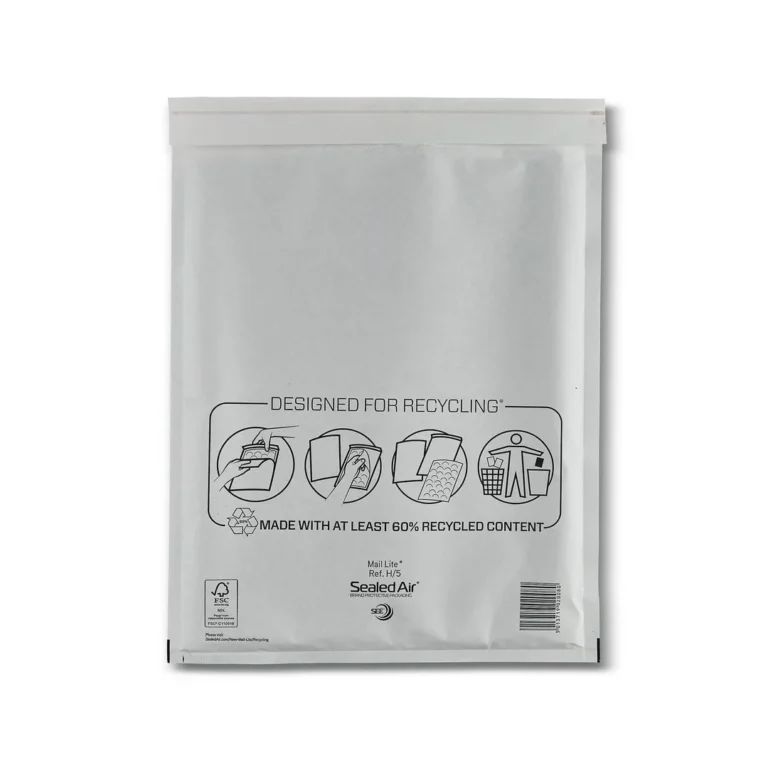 Den hvite Mail Lite®luftputekonvolutten er laget av robust kraftpapir og har bobleplast på innsiden som muliggjør sikrere sending av skjøre gjenstander. Denne lette konvolutten som er fôret med bobleplast, gir økt beskyttelse mot støt, slag, vekttrykk og andre påkjenninger under frakt.