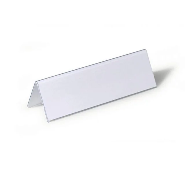 Skiltholder for visning av navn, etiketter, beskrivelser osv. Ideell til seminarer, konferanser, resepsjonsdisker, butikkdisker, butikkutstillinger Skiltet kan leses fra begge sider.