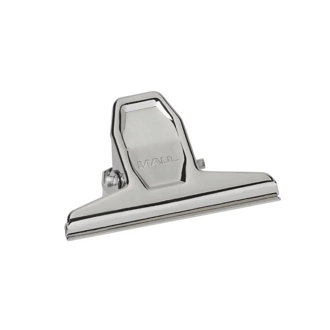 Brevklyper med høy materialkvalitet, styrke og holdbarhet, designet av MAUL og produsert Tyskland. Brevklype MAULpro er en sann klassiker med enestående design og funksjonalitet. Laget av sterkt stål, nesten uknuselig med ekstremt sterke doble ben og stålfjær. Langtidstestet og brukt millioner av ganger for å sikre svært høy holdbarhet og stor åpning. – Høy materialkvalitet, styrke og holdbarhet – Laget av sterkt stål, nesten uknuselig – Langtidstestet for svært høy holdbarhet og stor åpning – Dimple-håndtak forhindrer glidning av fingrene – Universal bruk for oppbevaring, påminnelse, henging, knytting, festing eller trykking – Kan henges opp for praktisk oppbevaring – Leveres med 3 års garanti – Åpning: 20 mm – Nikkelbelagt – Materiale: Metall – Bredde: 75 mm