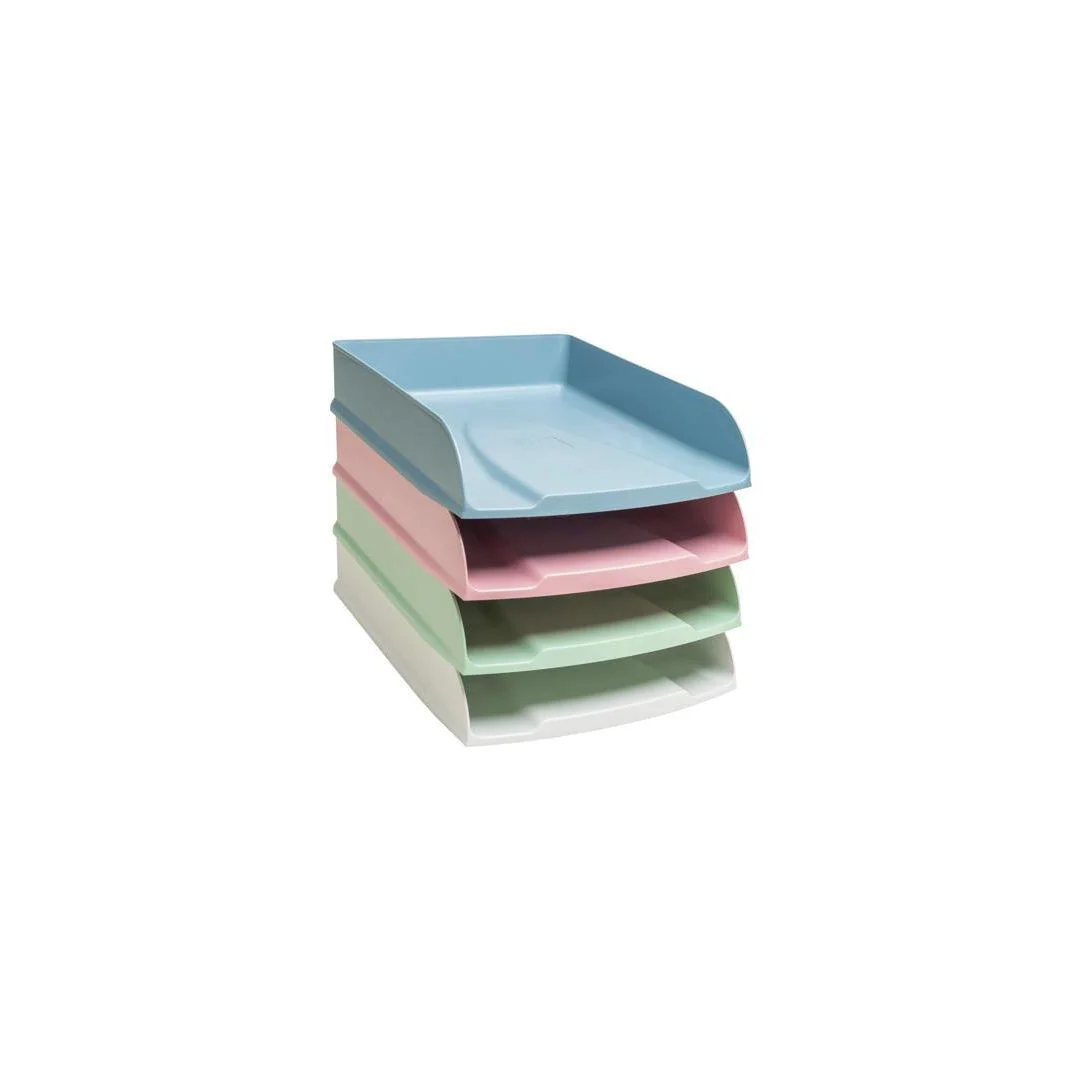 En moderne og robust oppbevaringsløsning. 4 brevkurver i assorterte farger Slitesterk og robust Passer for A4-dokumenter.