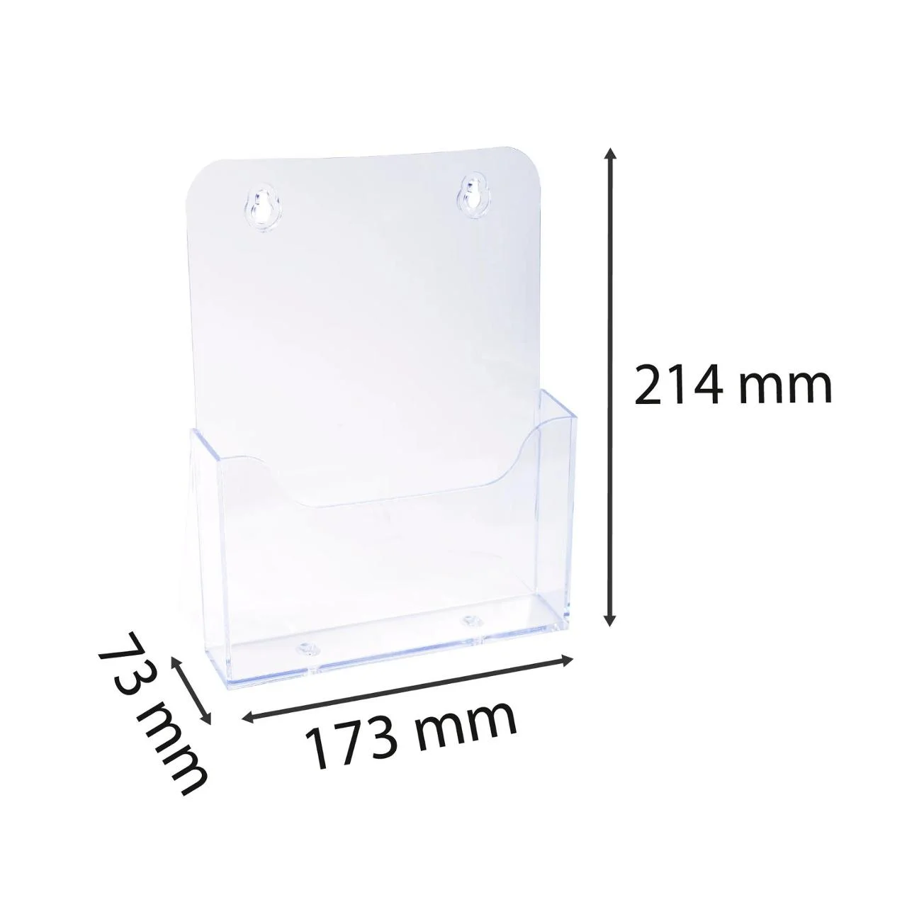 Transparent A5 brosjyreholder. Transparent polystyren litteraturholder med 1 vertikal A5-seksjon.