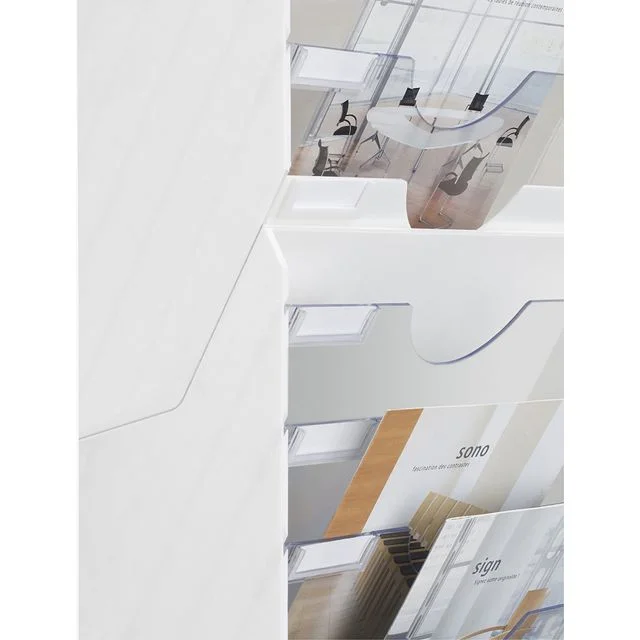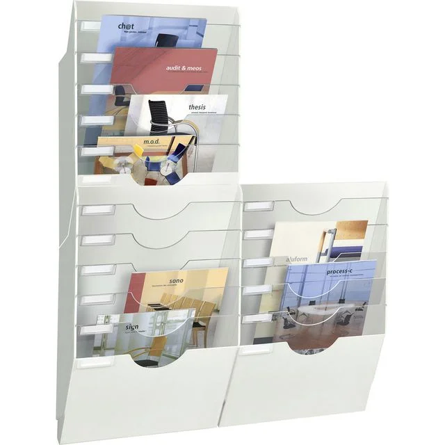 - CEP ReCeption 153-vegghyllen er laget av støtsikker polystyren og er en attraktiv, men praktisk lagringsløsning på arbeidsplassen eller resepsjonsområdet. Vegghyllen er ideell for lagring eller utstilling av dokumenter som er større enn 240 x 320 mm, og er også nyttig for organisering av post. I tillegg har hver enhet 6 rom som er atskilt av flyttbare skillevegger, noe som betyr at du kan enkelt forstørre og forminske seksjonene i vegghyllen etter hvert som behovene endrer seg. Hvis du vil ha ekstra lagringsplass, er det bare å montere flere vegghyller ved siden av eller over hverandre.