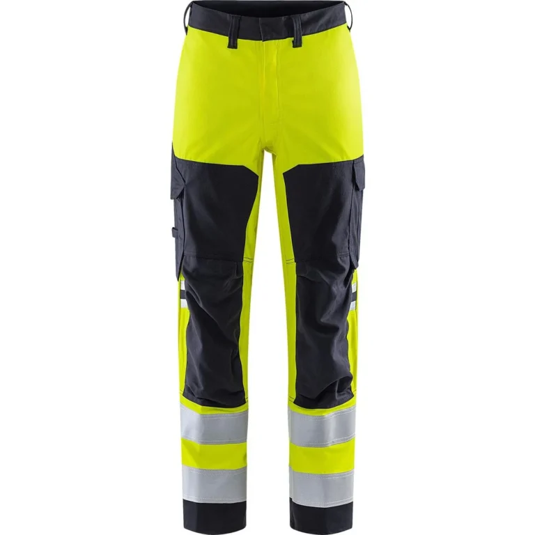 Lett stretchbukse med integrert flammebeskyttelseMykt og slitesterkt materiale med god bevegelsesfrihetSmuss-, olje- og vannavvisende overflateForsterket tommestokklomme og verktøyholder med praktiske løsningerSertifisert i henhold til EN 61482-1-1 og -1-2, EN ISO 11612, EN 1149-5, EN 11611, EN 13034, EN 14404 og EN ISO 20471 klasse 2Godkjent etter 50 vask (ISO 15797)Maks vasketemperatur 60°CFarge: Hi-Vis Gul/MarineblåSesong: HelårsMateriale: Stretch 45% modakryl, 34% bomull, 17% polyamid, 2% elastan, 2% antistatisk fiber. Forsterkning 45% modakryl, 35% bomull, 18% polyamid, 2% antistatisk fiber. Integrert flammebeskyttelse