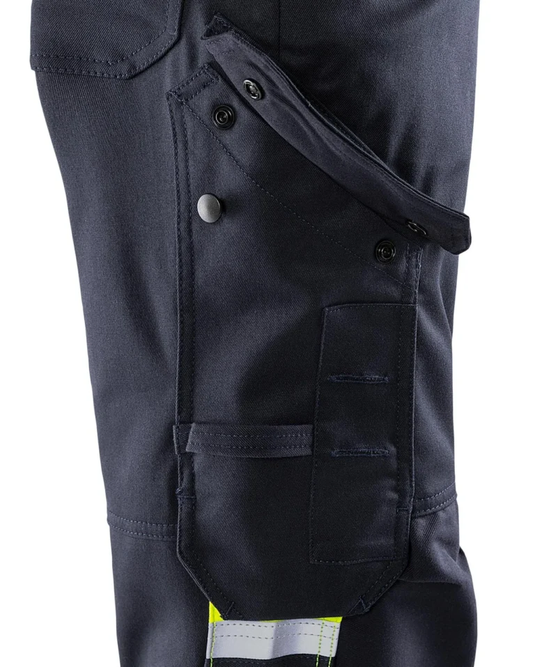 Buksen er smuss-, olje- og vannavvisende og har funksjonelle detaljer som forsterket tommestokklomme, verktøyholder og festemuligheter for slirekniv. Sertifisert etter en rekke internasjonale normer for lysbue, flamme, sveising, synlighet og knebeskyttelse – og godkjent for industrivask.