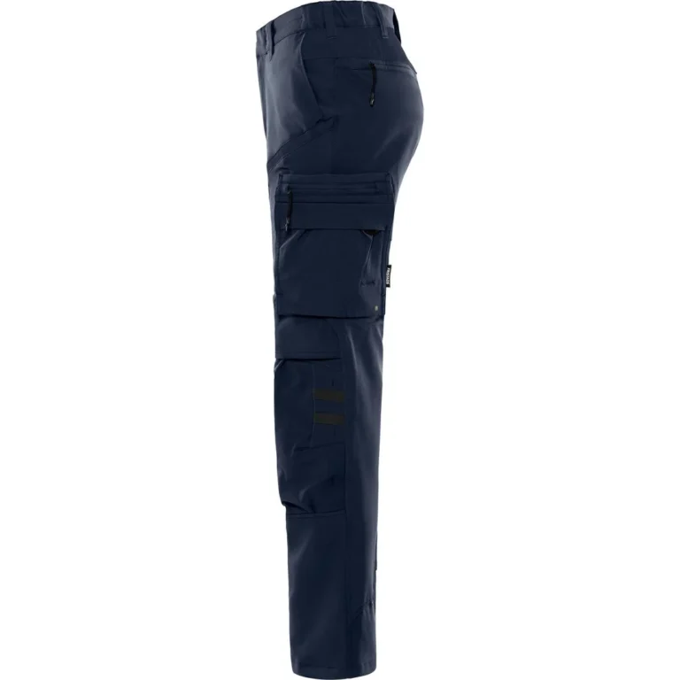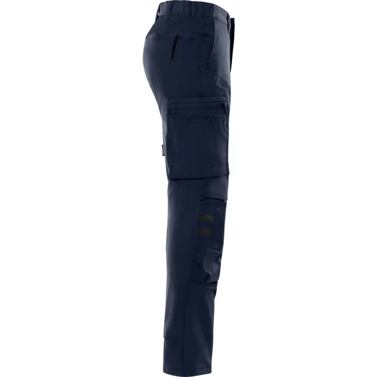 Denne lette og komfortable damebuksen er utviklet for deg som trenger både bevegelsesfrihet og slitestyrke på jobb. FRISTADS 2654 er laget i 4-veis stretchmateriale med høy andel resirkulert polyester og forsterket med ripstop i utsatte områder. Praktiske detaljer som verktøylommer, pennelomme og refleks gir deg både funksjonalitet og trygghet i en hektisk arbeidshverdag. Passer like godt for håndverkere som for serviceyrker. – Spesialtilpasset passform for kvinner – 4-veis stretch med høy andel resirkulert polyester – Ripstop-forsterkninger gir ekstra slitestyrke – Benlomme med trykknapp, tommestokkhempe og glidelåslomme – Refleksdetaljer ved knær og benender – Godkjent i henhold til EN 14404 med knebeskyttere 124292 – Maks vasketemperatur 60°C – Farge: Mørk marineblå – Sesong: Helårs – Materiale: Stretch 93% resirkulert polyester, 7% elastan. Ripstop stretch 87% polyamid, 13% elastan