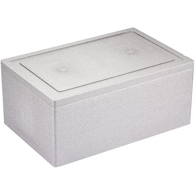 Varmeisolerende container i isopor med lokk.