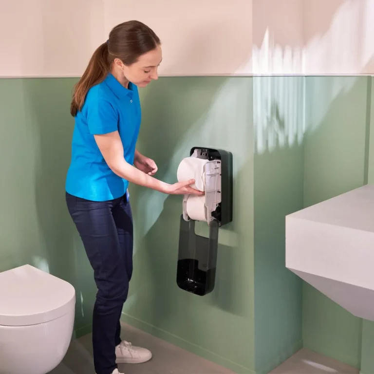 Tork OptiServe® er et dispensersystem for hylsefritt toalettpapir med