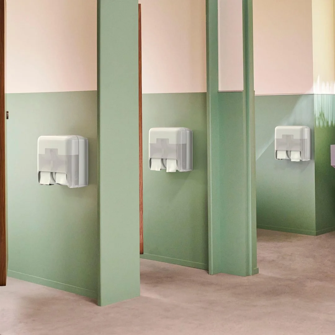 Tork OptiServe® er et dispensersystem for hylsefritt toalettpapir med