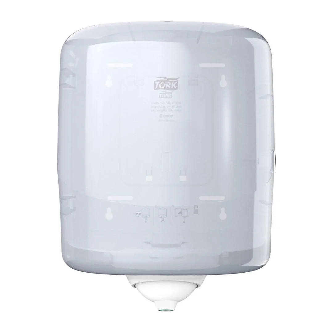 Dispenser er robust nok til å tåle røff bruk og er egnet for tøffe omgivelser. Unngå å gå tom for papir med den praktiske sluttindikatoren. Berør bare det du trenger å ta med enkeltark og grip tak i papiret fra hvilken som helst vinkel med den roterende tuten Forbedre hygienen på arbeidsplassen med et design som er enkelt å holde rent Lett rengjørbart design med avtagbart lokk Refill med sluttindikator viser når påfyll er nødvendig, betyr at du aldri står uten papir Material: plast Egnet til M4 refiller fra Tork.
