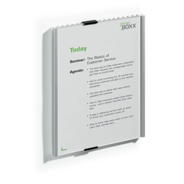 Antirefleks akrylvindu beskytter teksten mot slitasje. Enkel montering med inkludert mal og monteringsutstyr. Design dine skilt personlig med durables gratis nettbaserte verktøy, duraprint. Praktisk utskriftsformat med fem innsatser per A4-ark.