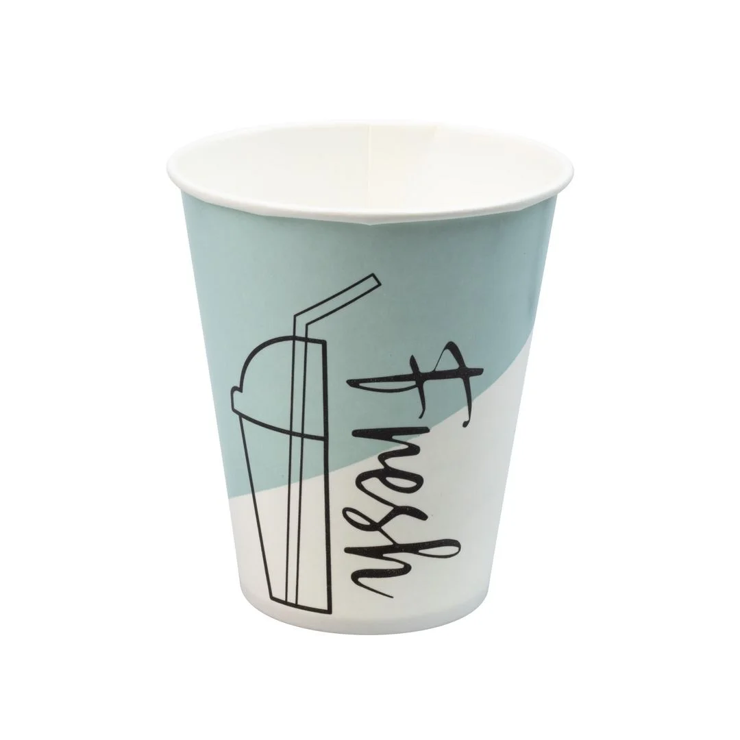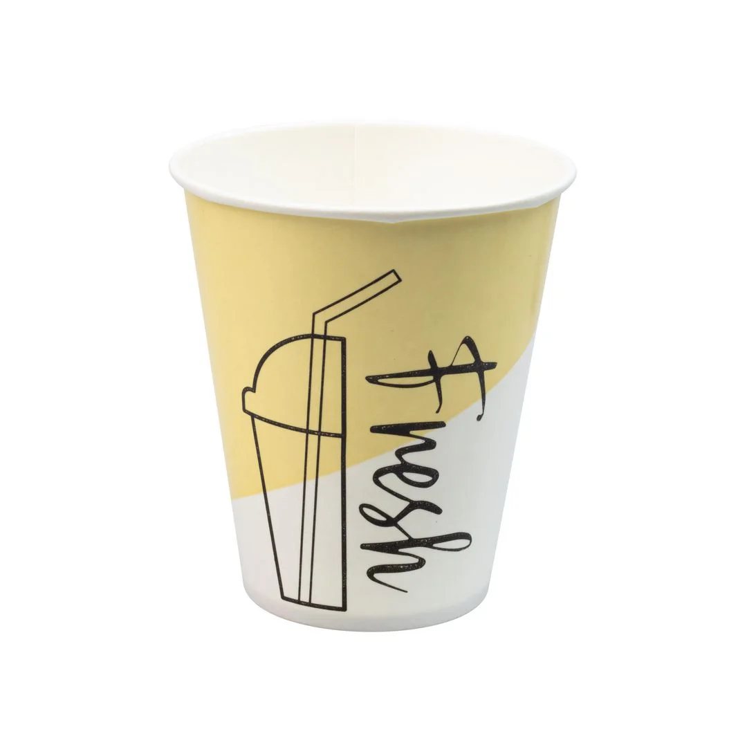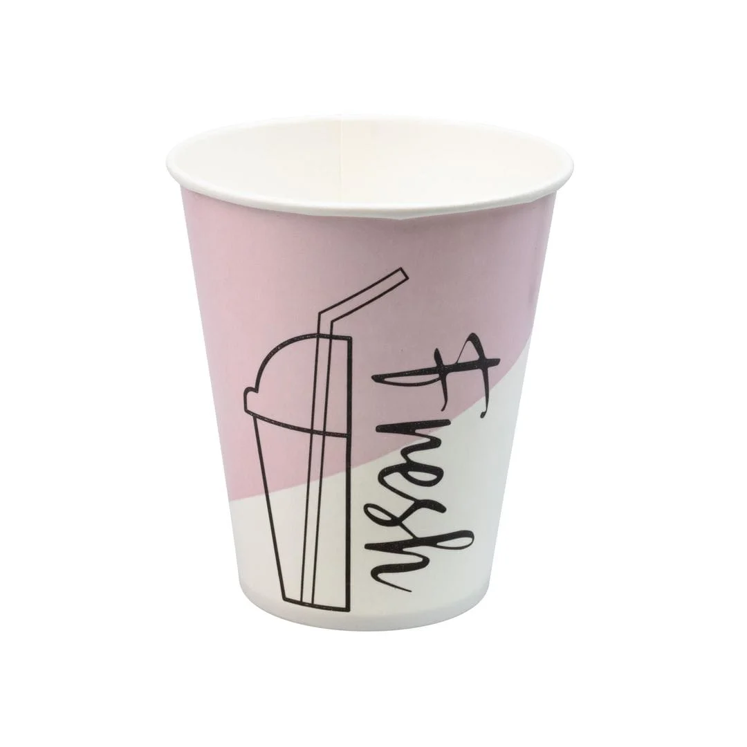 Drikkebegere produsert av kartong, ypperlig til bruk med alle typer kalde drikker. Velegnet for kaféer, uteservering og take away til milkshake, slush, smoothie, brus og annen kald drikke. Pappbegeret har et belegg av plantebasert materiale, ingen bruk av fossile ressurser. Kan benyttes med lokk diameter 90mm, selges separat. – Drikkebeger for kald drikke – Materiale: Papp med belegg av plantebasert PE – Bruksvolum: 30cl – Volum til kanten: 38cl – Øvre diameter: 90mm – Assorterte farger i forpakningen – Antall: 75stk