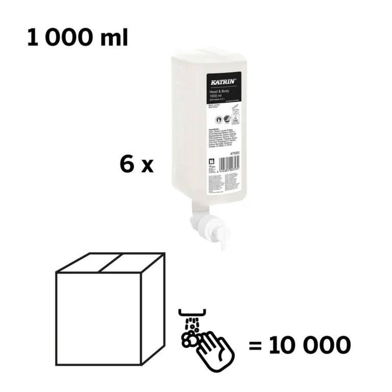 Har hudvennlig PH-verdi og er skånsom mot huden. Produktet er pakket i en resirkulerbar beholder og rekker til 1667 doser. Inneholder milde ingredienser som gjør denne såpen spesielt egnet for hyppig bruk. Dermatologisk testet og godkjent. Passer til Katrins såpedispenser 1000ml. Dermatologisk testet Luft- og bakterietett flaske med engangsventil.